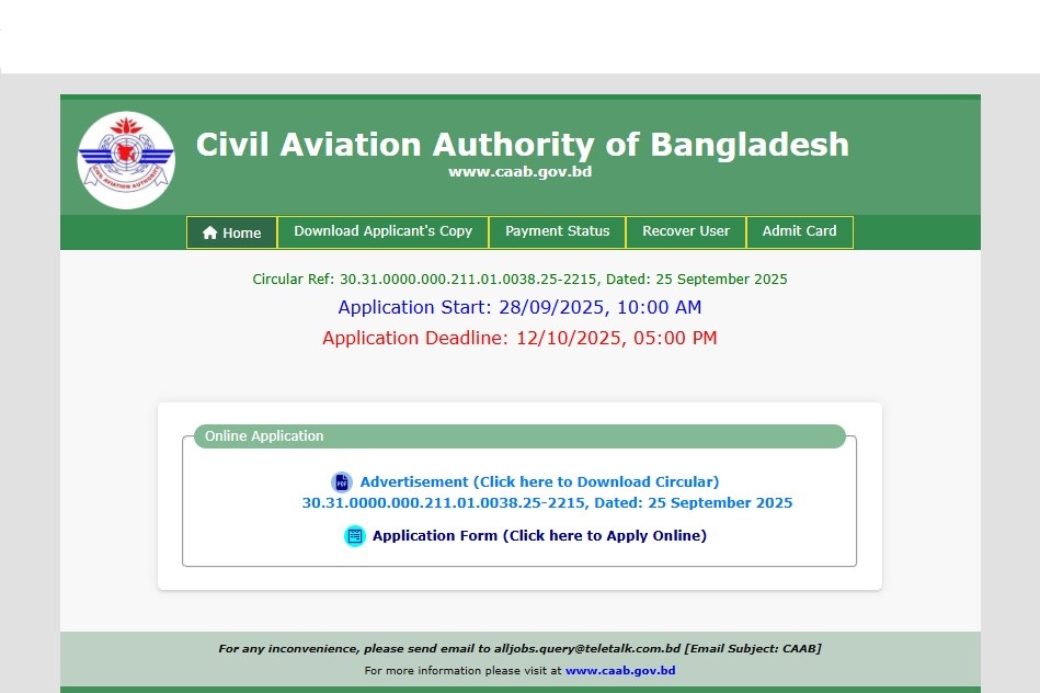 Civil Aviation Authority of Bangladesh (CAAB) Job Circular 2025: