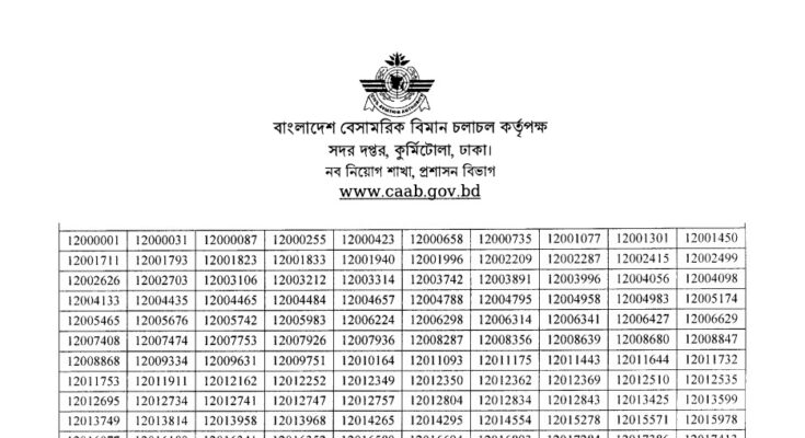 Civil Aviation Authority of Bangladesh Exam Result 2025: