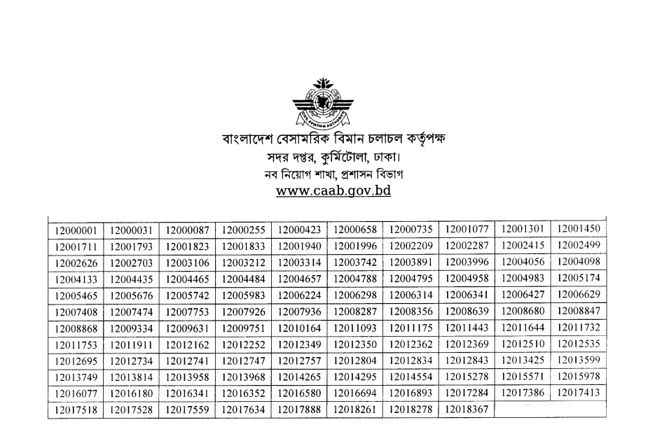 Civil Aviation Authority of Bangladesh Exam Result 2025: