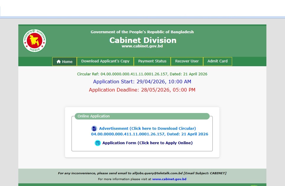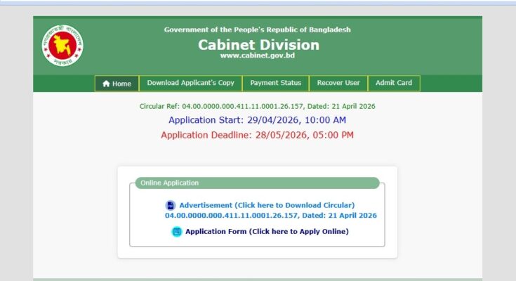 See/download the Cabinet Division (CABINET) Job Circular 2026, Job Apply Instructions, Job Application Form, Application Fee, Payment Process, Salary, Age, and Other Information from the images below: