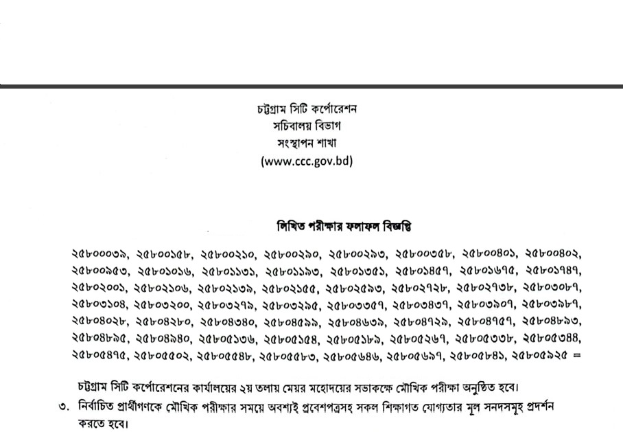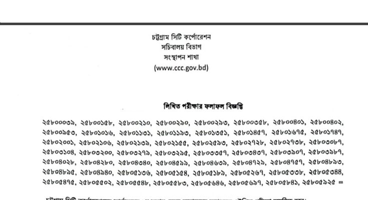 Chittagong City Corporation Job Exam Result Notice 2025:
