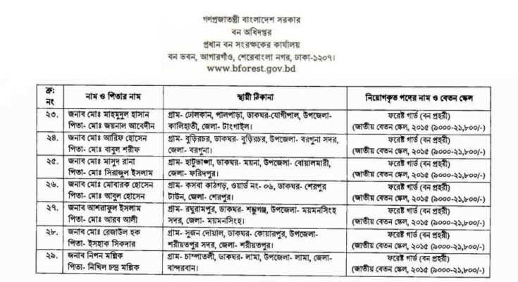 Forest Guard Patuakhali Job Appointment Letter PDF Notice Link: Click here to download the Job Appointment Letter