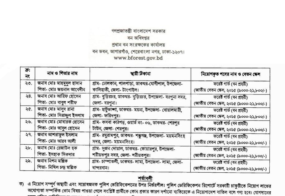 Forest Guard Sylhet Job Appointment Letter PDF Notice Link: Click here to download the Job Appointment Letter