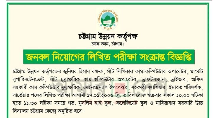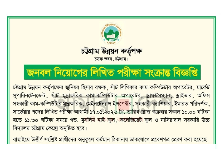 Chittagong Development Authority Job Exam Date 2026: