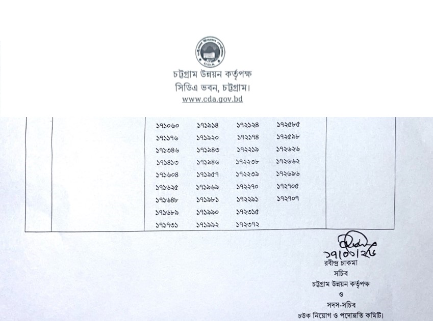 Chattogram Development Authority (CDA) Exam Result 2026 has been published. The authority has published the CDA Exam Result 2026. The Chittagong Development Authority Exam Result 2026 is good news for job seekers in Bangladesh. All information on Chattogram Development Authority Exam Result 2026 is available below. Chattogram Development Authority (CDA) is a Government Organization in Bangladesh.