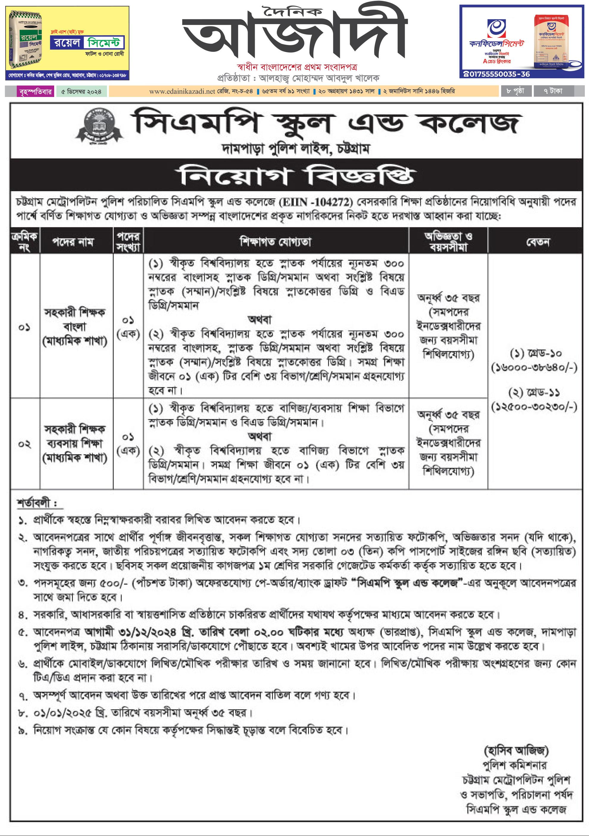 Job Source: Dainik Azadi (05 December 2024)