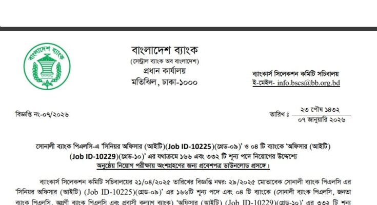 Combined Bank IT Related Post Admit Card Download 2026 has been published. Sonali Bank Senior Officer (IT) Admit Card Download 2026 has been published by the authority. The Combined 4 Bank Officer (IT) Admit Card Download 2026 is good news for job seekers. All information on the Combined Bank IT Post Admit Card Download 2026 is available below. The Bankers’ Selection Committee Secretariat is a Government organization in Bangladesh.