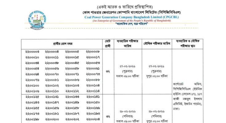Coal Power Generation Company Bangladesh Limited Exam Result 2026:
