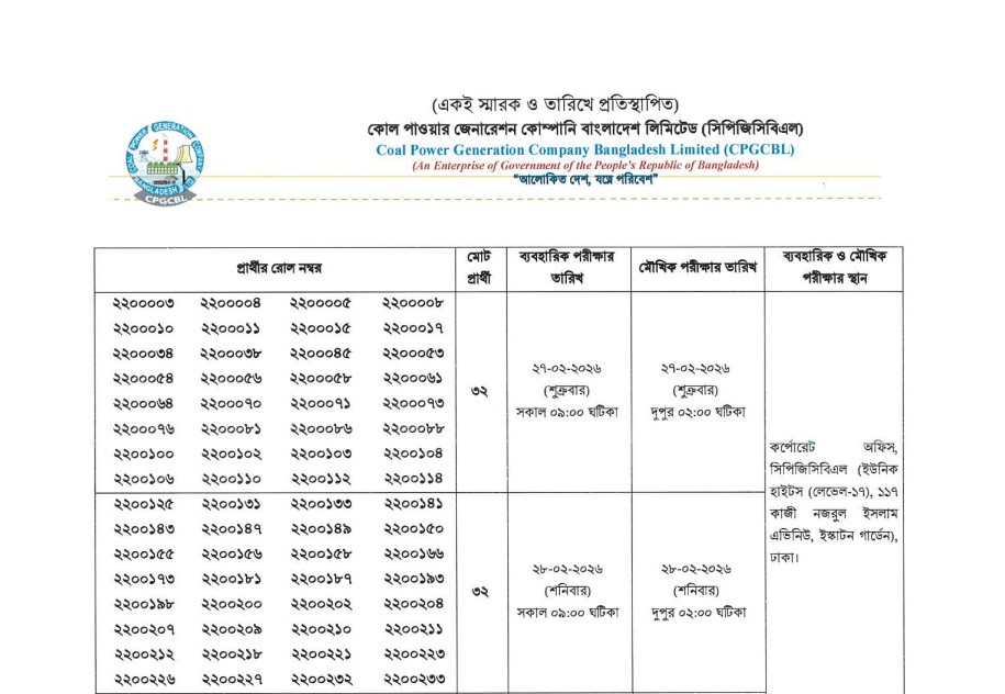 See/download Coal Power Generation Company Bangladesh Limited Exam Result 2026 from the images below: