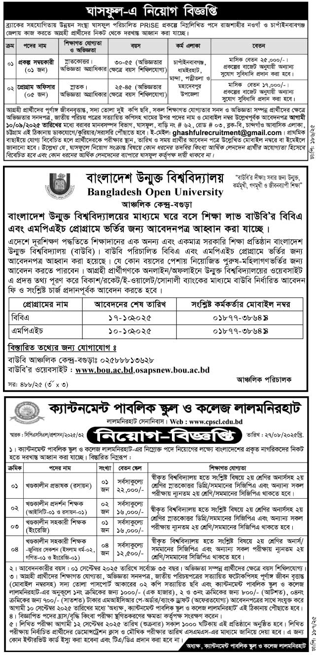 Job Source: Daily Karatoa (30 August 2025)