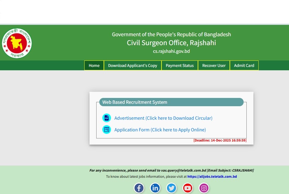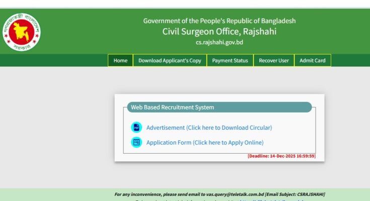 Rajshahi Civil Surgeon Office Job Circular 2025: