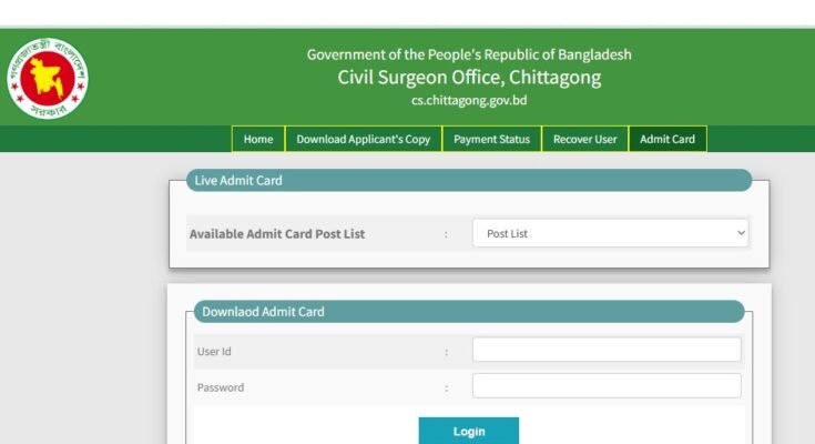 Civil Surgeon Office Chittagong Exam Date and Admit Download 2025: