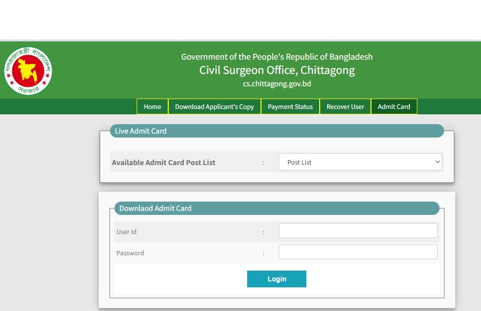 Civil Surgeon Office Chittagong Exam Date and Admit Download 2025: