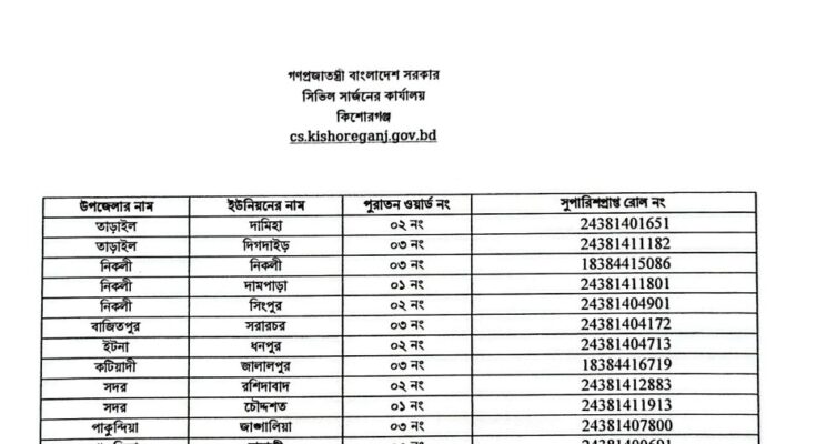 Civil Surgeon Office Kishoreganj Job Panel Result List 2025: