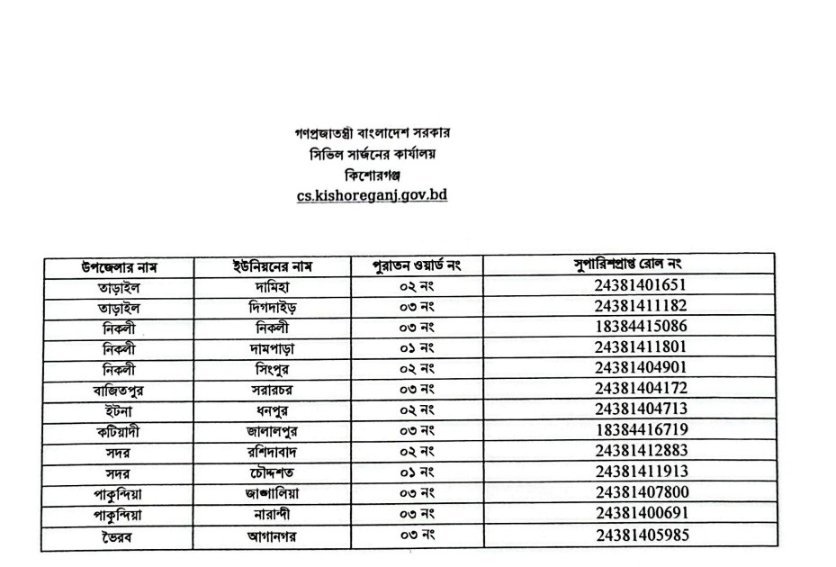 Civil Surgeon Office Kishoreganj Panel Result 2025