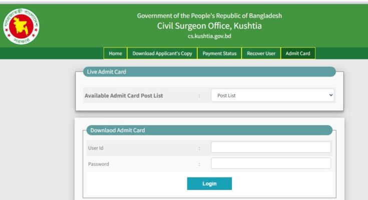 Civil Surgeon Office Kushtia Exam Date and Admit Card Download 2025: