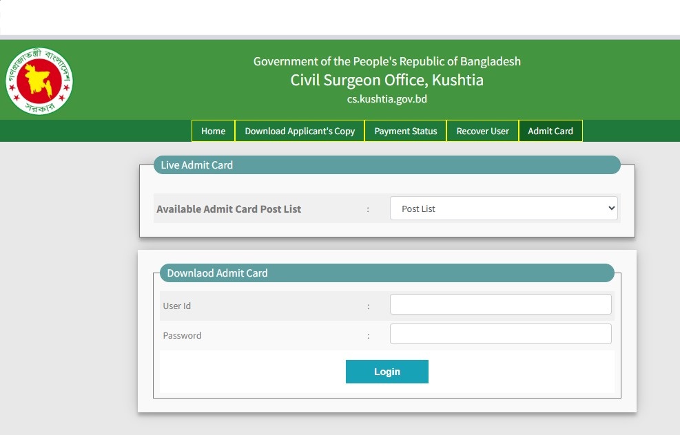 Civil Surgeon Office Kushtia Exam Date and Admit Card Download 2025: