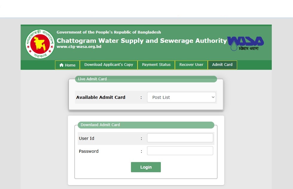 Chattogram WASA (CWASA) Exam Date and Admit Download 2026: