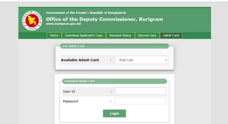 Kurigram DC Office Exam Date and Admit Download 2026: