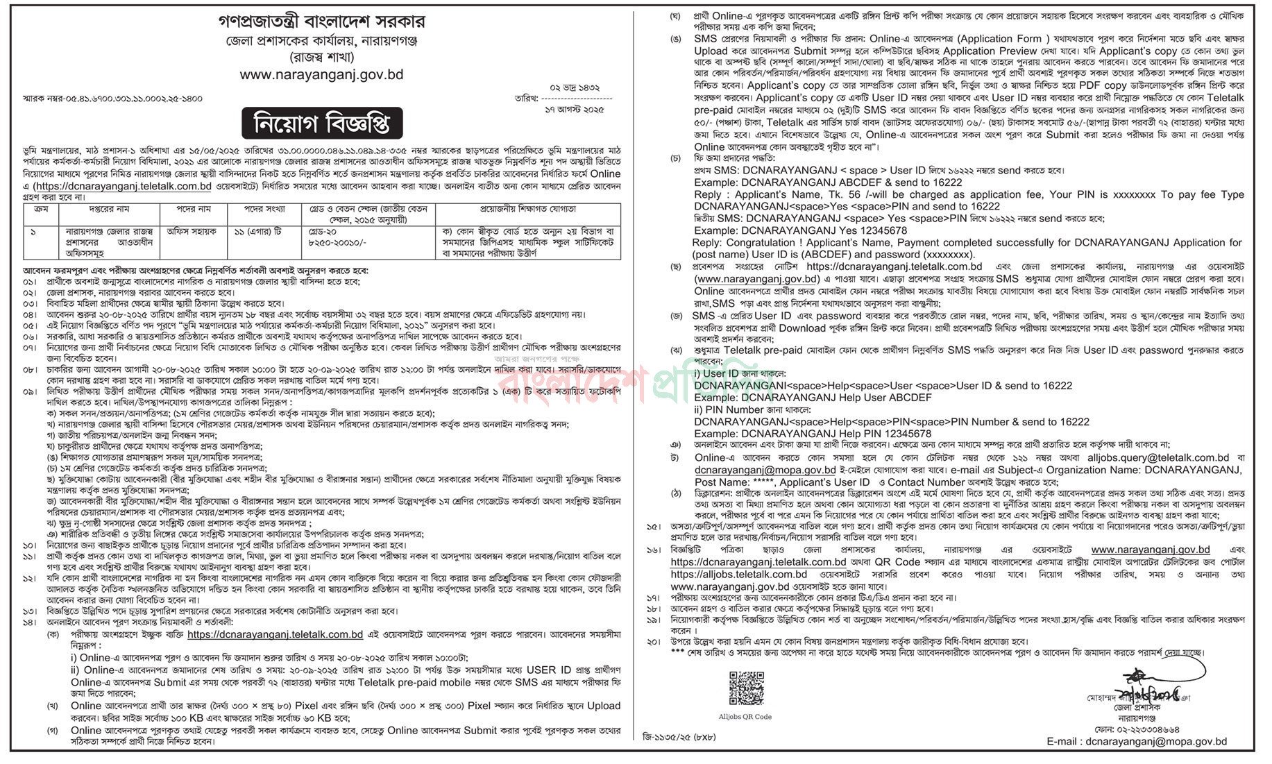 See/download the Office of the Deputy Commissioner Narayanganj Job Circular 2025, Job Apply Instructions, Job Application Form, Application Fee, Payment Process, Salary, Age, and Other Information in the images below:
