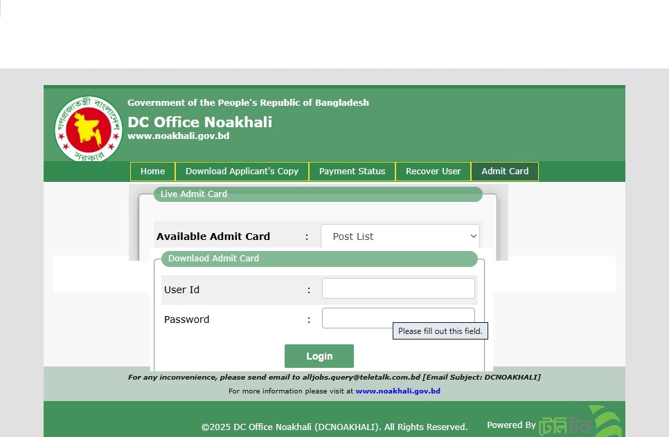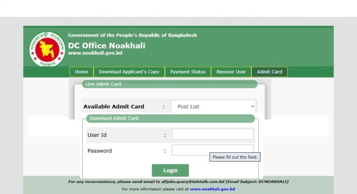 DC Office Noakhali Exam Date and Admit Download 2025: