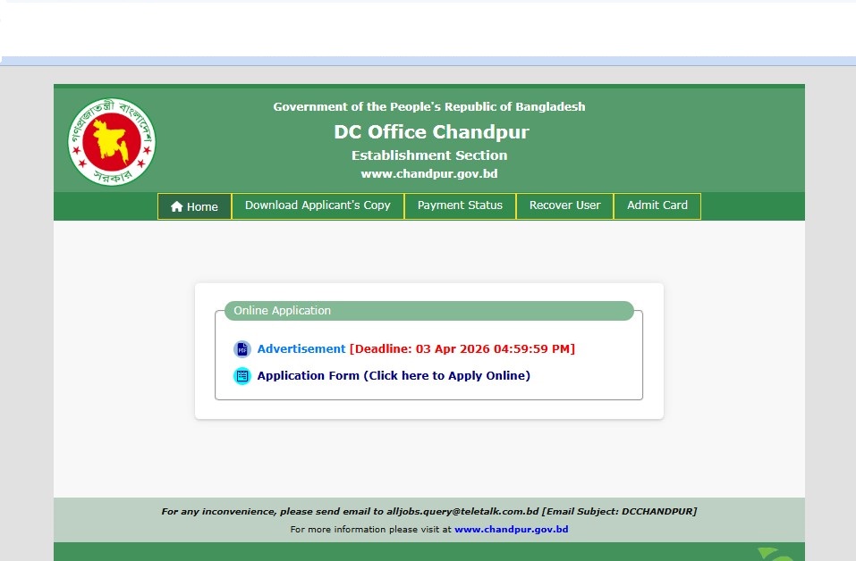 Organization Name: Chandpur Deputy Commissioner’s Office
