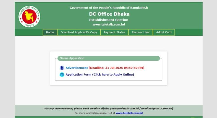 Deputy Commissioner Office Dhaka Job Circular 2025: