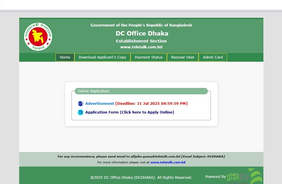 See/download the Office of the Deputy Commissioner Dhaka Job Circular 2025, Job Apply Instructions, Job Application Form, Application Fee, Payment Process, Salary, Age, and Other Information in the images below: