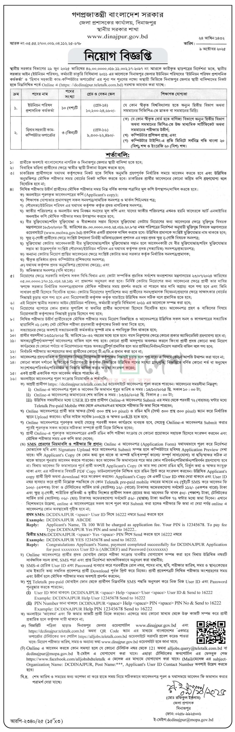 See/download Deputy Commissioner Office Dinajpur Job Circular 2025, Job Apply Instructions, Job Application Form, Application Fee, Payment Process, Salary, Age, and Other Information from the images below: