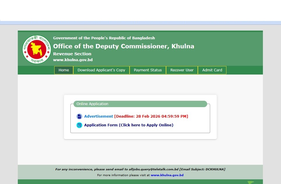 See/download Office of Deputy Commissioner Office Khulna Job Circular 2026, Job Apply Instructions, Job Application Form, Application Fee, Payment Process, Salary, Age, and Other Information from the images below: