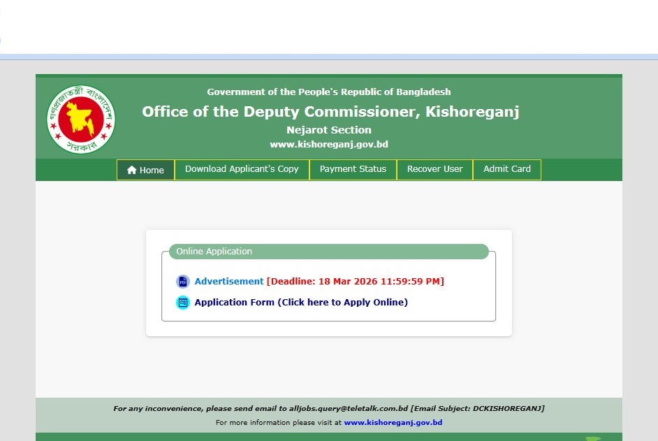 Deputy Commissioner’s Office, Kishoreganj Job Circular 2026: