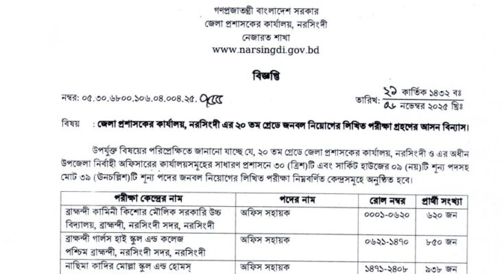 Narsingdi DC Office Exam Date and Seat Plan 2025: