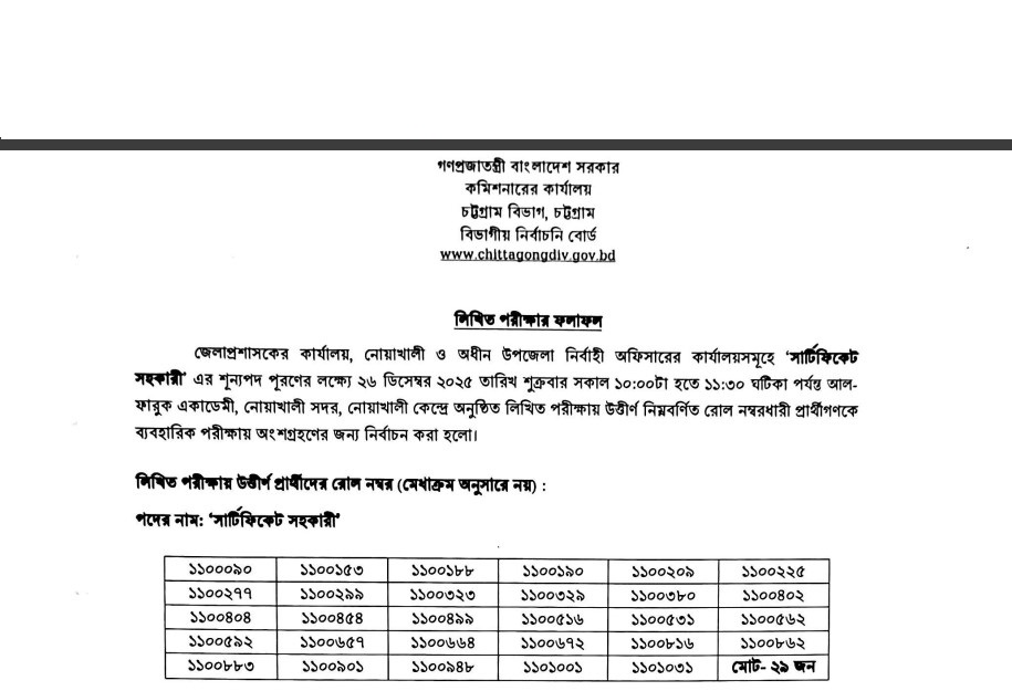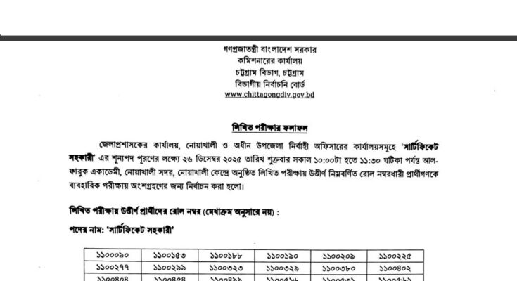 See/download the Office of Deputy Commissioner’s Noakhali Job Exam Result Notice 2025 from the images below: