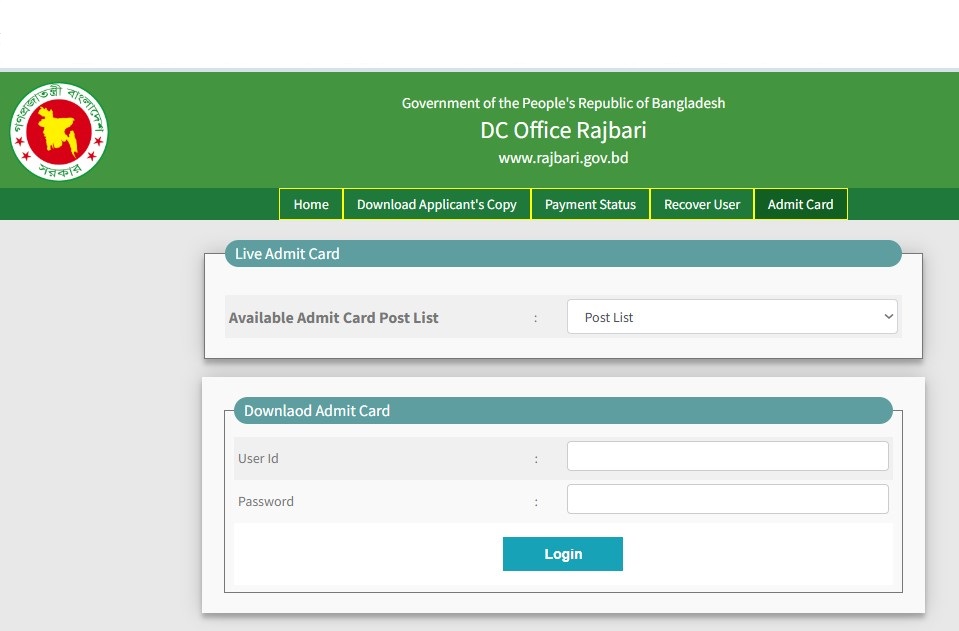 Deputy Commissioner Office Rajbari Job Exam Notice 2026: