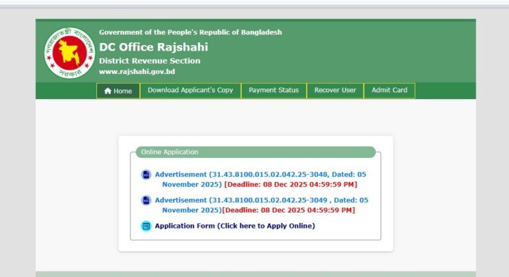 Deputy Commissioner Office Rajshahi Job Circular 2025: