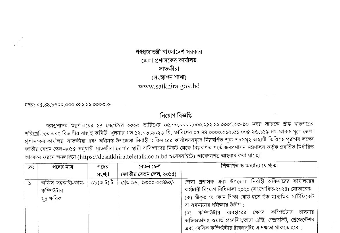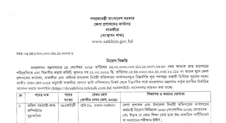 DC Office Satkhira Job Circular 2022 has been published. Office of Deputy Commissioner’s Satkhira Job Circular 2022 has been published by the Authority. Satkhira DC Office Job Circular 2022 is important news for job seekers in Bangladesh. All information on Deputy Commissioner Office Satkhira Office Sohayak Job Circular 2022 is available below. District Commissioner Office Satkhira is a Government Organization in Bangladesh.