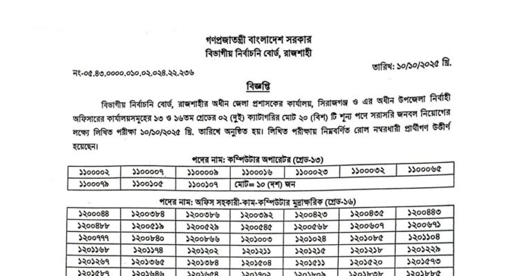 DC Office Sirajganj Exam Result 2025: