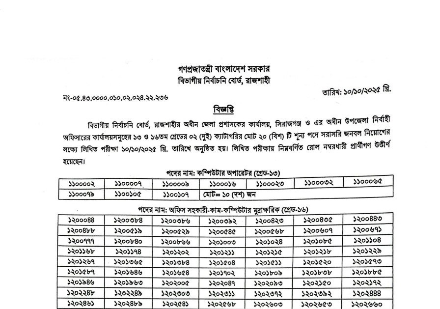 See/download the Deputy Commissioner’s Office, Sirajganj Exam Result 2025 from the images below: