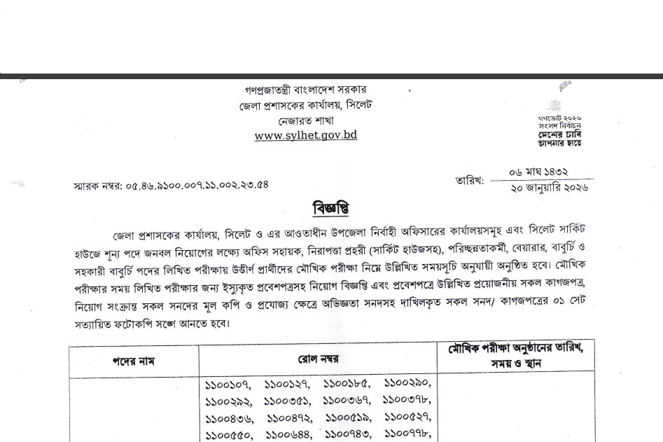 See/download the DC Office Sylhet Viva Notice 2026 from the images below: