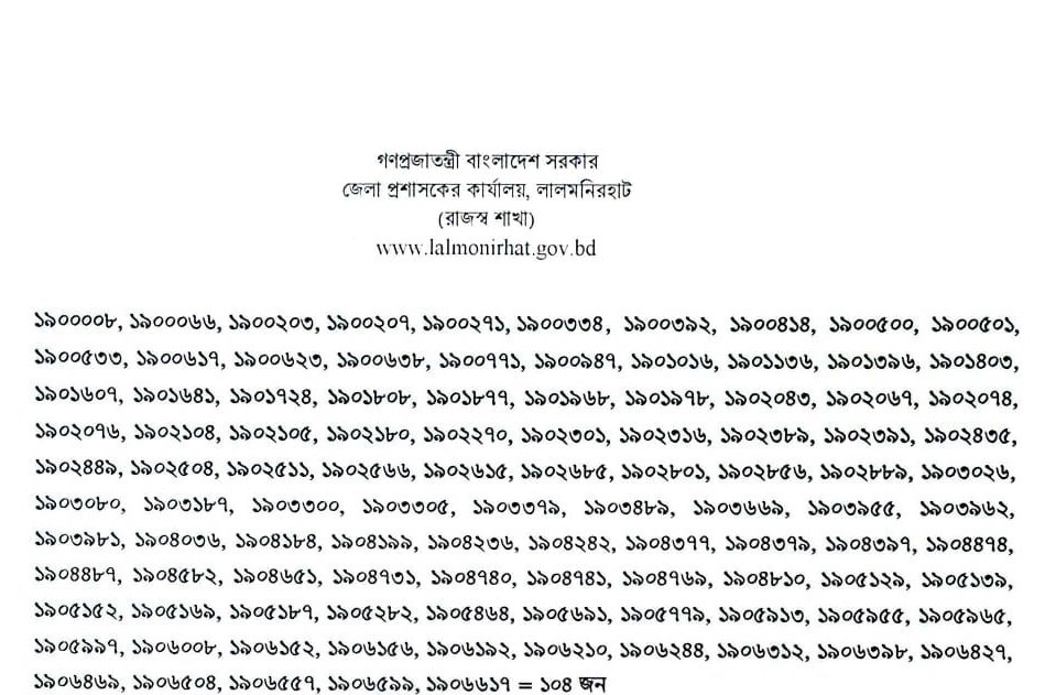 Deputy Commissioner Office, Lalmonirhat Exam Result 2026: