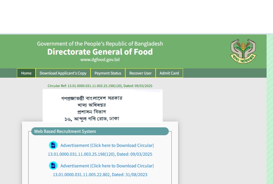 The authority has published the Food Department Job Exam Tender Notice 2025. Directorate General of Food Job Circular All information is given below. Directorate General of Food (DGFood) is one of the largest Government organizations in Bangladesh. The Directorate General of Food has published a huge job circular for the Authority. All information regarding the appointment of the Directorate General of Food (DGFood) is given on our website jobstestbd.com. We publish all job circulars every day, Such as Government Jobs in Bangladesh, Bank Jobs in Bangladesh, Private Jobs in Bangladesh, International NGOs in Bangladesh, Private companies in Bangladesh, and Private University Jobs in Bangladesh. Bank Jobs Results, Government Jobs Results, Government University Jobs Results in Bangladesh, and all Part-time Jobs in Bangladesh and other educational support are available here on our website. We provide different types of job information, some effective information or resources, and job tips that help to get a job easily. We trust that our distributing data helps the activity searchers who are looking for better employment. We likewise share slanting assets for learners who are expanding their insight. Our principle target turns into a trusty occupation round site in Bangladesh by distributing a genuine refresh that enables opportunities to individuals. All the jobs on this website are not only for unemployed people but also for employed people. All types of suggestions and question solutions for the different competitive exams are available here. We provide all types of educational support on our website jobstestbd.com. So every day visit our website for all kinds of educational support. Please like our Facebook page jobstestbd.com.