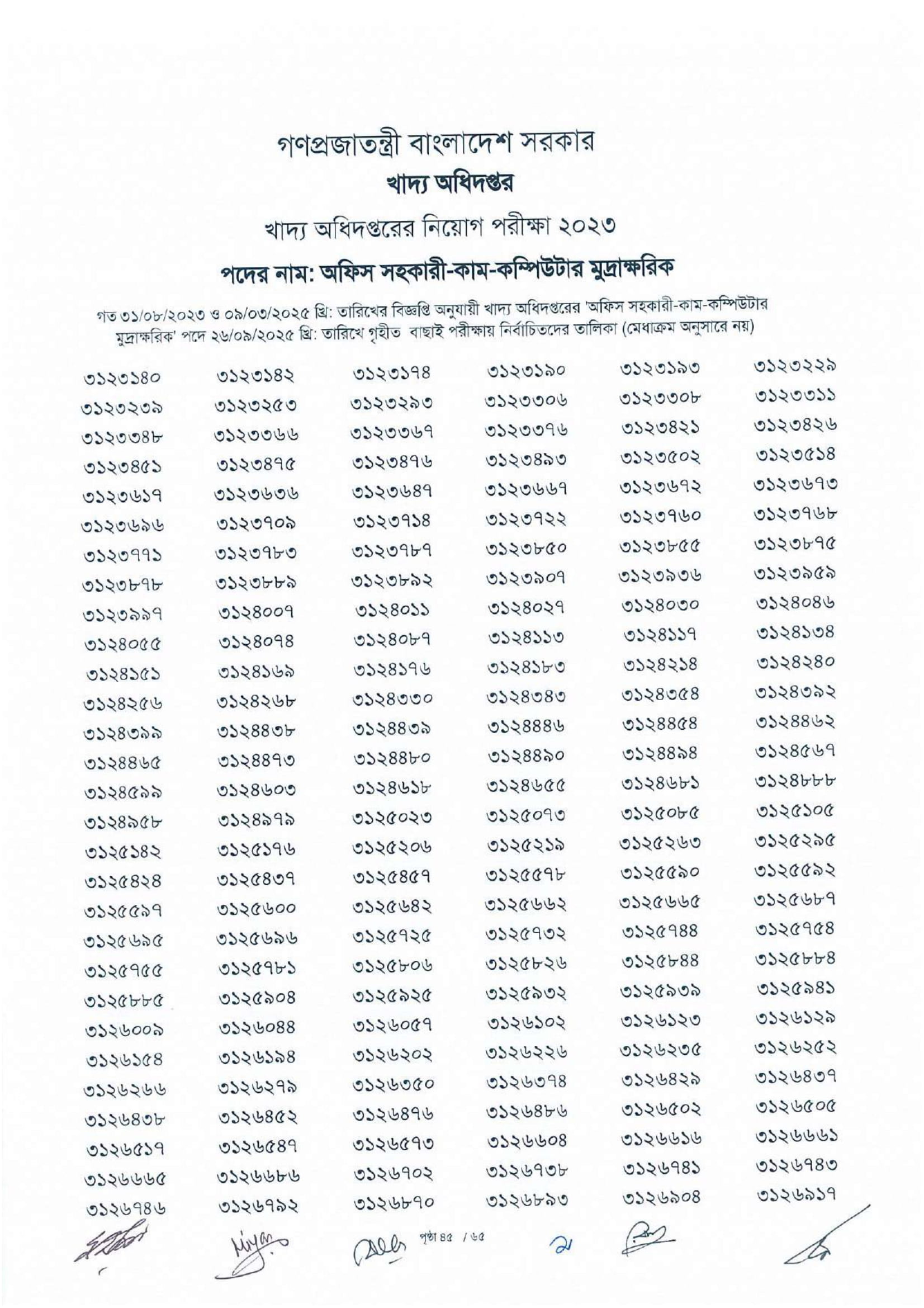 DGFood Office Assistant Cum Computer Typist Exam Result 2025 PDF-47