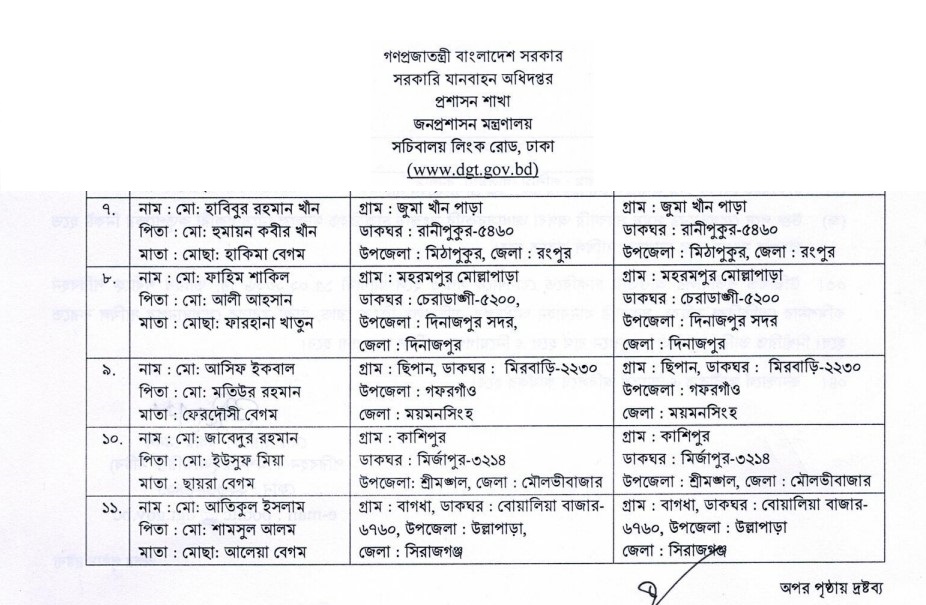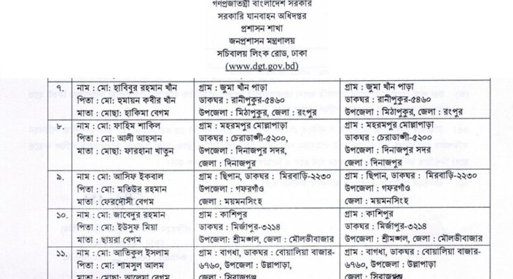 Department of Government Transport (DGT) Job Appointment Letter 2026 has been published. DGT Job Appointment Letter 2026 has been published by the authority. DGT Job Joining Date 2026 is good news for job seekers in Bangladesh. All information on the Department of Government Transport Job Appointment Letter 2026 is available below. The Department of Government Transport (DGT) is a Government Organization in Bangladesh.