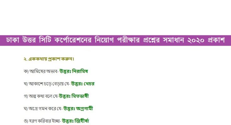 Dhaka North City Corporation (DNCC) Exam Question Solution 2020: