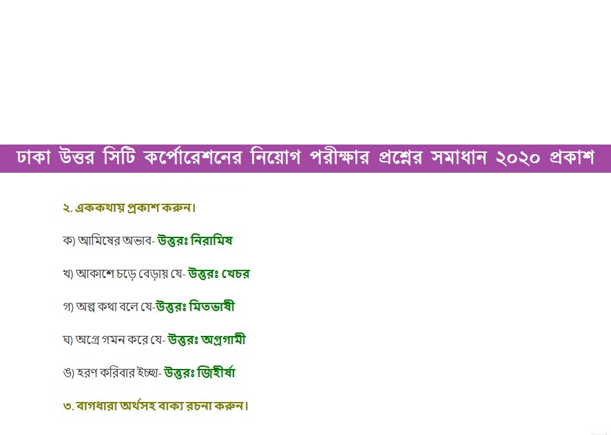 Dhaka North City Corporation (DNCC) Exam Question Solution 2020: