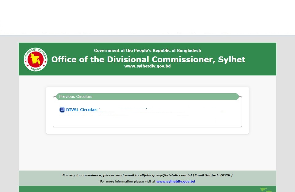Divisional Commissioners’ Office Sylhet (DIVSL) Job Circular 2026 has been published. DIVSL Job Circular 2026 has been published by the authority. Divisional Commissioners’ Office Sylhet Job Circular 2026 is great news for job seekers in Bangladesh. All information on the Sylhet Divisional Commissioners Office Job Circular 2026 is available below. Divisional Commissioners’ Office Sylhet (DIVSL) is a Government Organization in Bangladesh.