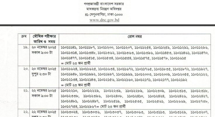 Department of Narcotics Control (DNC) Viva Date 2025: