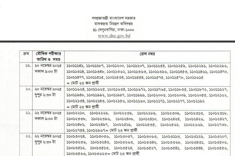 Department of Narcotics Control (DNC) Viva Date 2025 has been published. Department of Narcotics Control Viva Date 2025 has been published by the authority. DNC Sepoy Viva Date 2025 is good news for job seekers in Bangladesh. All information on the DNC Wireless Operator Viva Date 2025 is available below. The Department of Narcotics Control (DNC) is a Government Organization in Bangladesh.