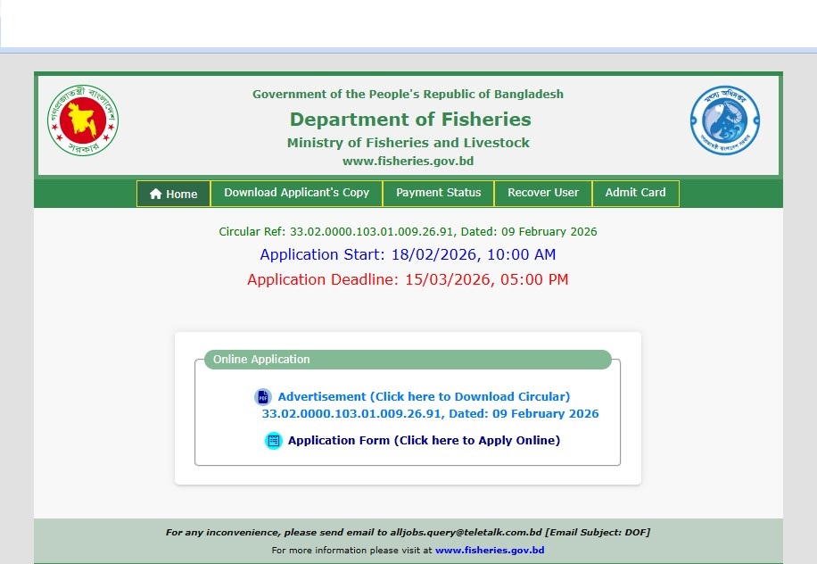 See/download the Department of Fisheries (DOF) Job Circular 2026, Job Apply Instructions, Job Application Form, Application Fee, Payment Process, Salary, Age, and Other Information from the images below: