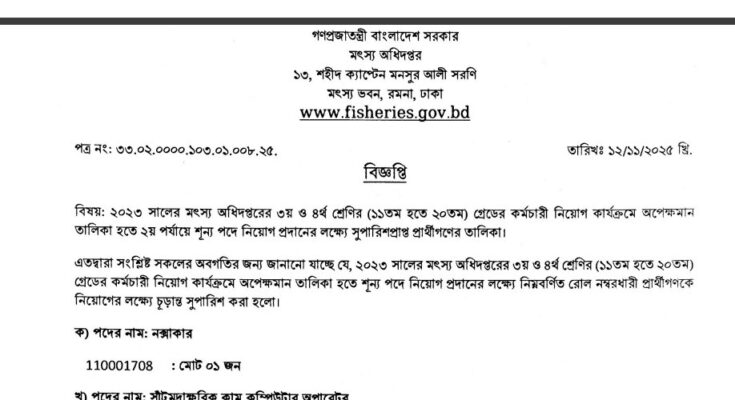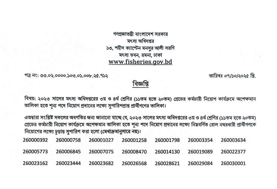 Department of Fisheries (DOF) Panel Result 2025 has been published. The authority has published the DOF Panel Result 2025. The Fisheries Department Panel Result 2025 is good news for job seekers. All information on the DOF Panel Result List 2025 is available below. The Department of Fisheries (DOF) is a government organization in Bangladesh.